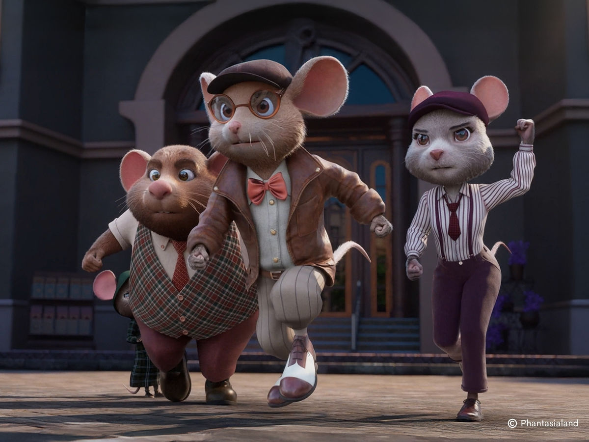 Als Film präsentiert das Phantasialand "Die Drei Mausketiere". Dabei geht es darum, dass drei Kinder im Berlin der 1920er Jahre in Mäuse verwandelt werden, um Mausville, eine geheime Mäusestadt, vor einer bösen Ratte zu retten, die den Mäusen die "Kugel des Spaßes" gestohlen hat. So wild sich die Story anhört, so wild präsentiert sich auch das Geschehen. Die drei Hauptakteure werden durch den Abwasserkanal gespült, von den Ratten mit Zeppelinen und Raketen gejagt oder von Jetskis verfolgt. Von der ersten Minute an ist bei dem Film Vollgas angesagt – und das ändert sich auch nicht bis zum (etwas merkwürdigen) Schluss. Die Qualität der Animation ist auf gewohnt hohem Niveau und bietet eine zuckersüße Optik, die der von "Crazy Bats" in nichts nachsteht. Ob einem das familienfreundliche Thema des Films nun gefällt oder nicht, mag jeder für sich entscheiden, weil so etwas ja auch immer Geschmackssache ist – handwerklich leistet man sich jedenfalls keinen Schnitzer, und die begeisterten Gesichter der Gäste zeigen, dass man hier wohl ins Schwarze getroffen hat.