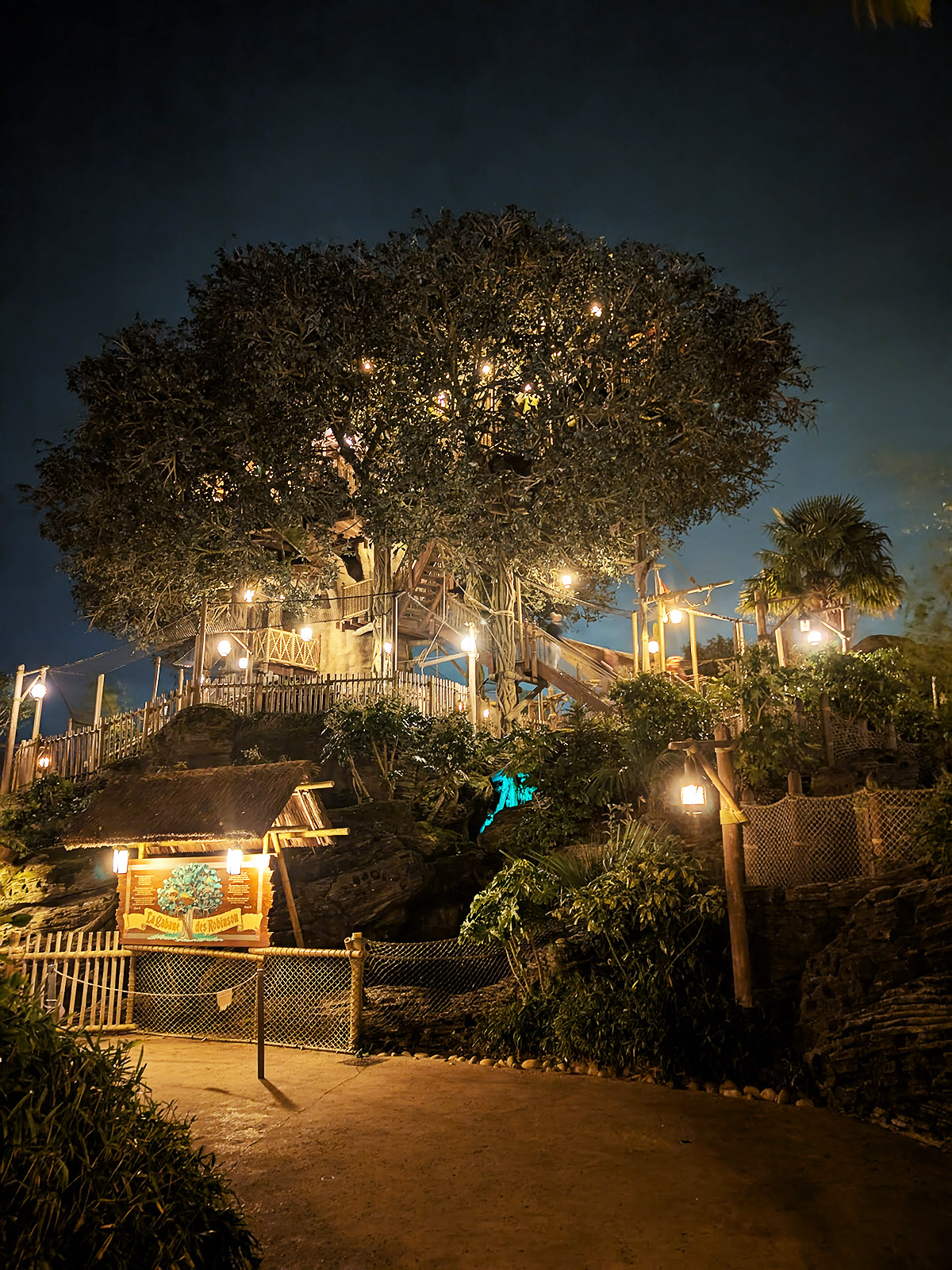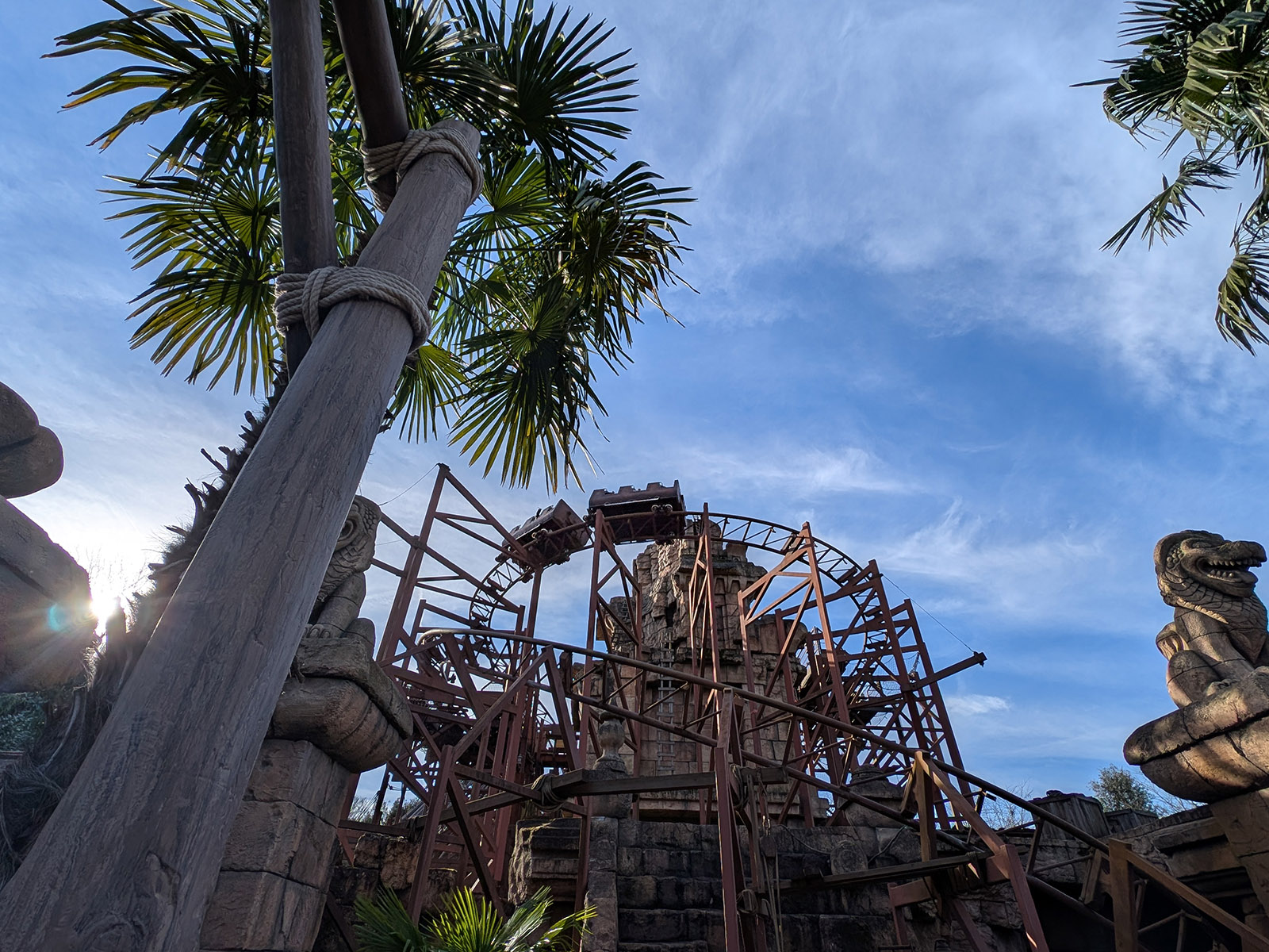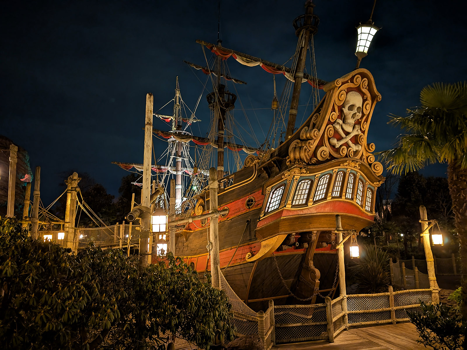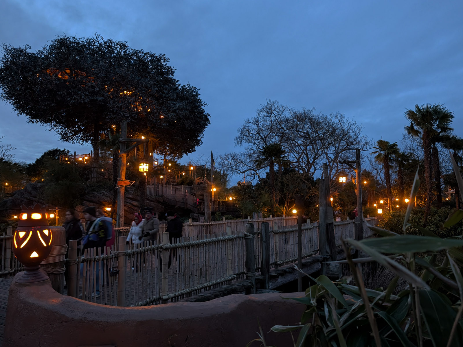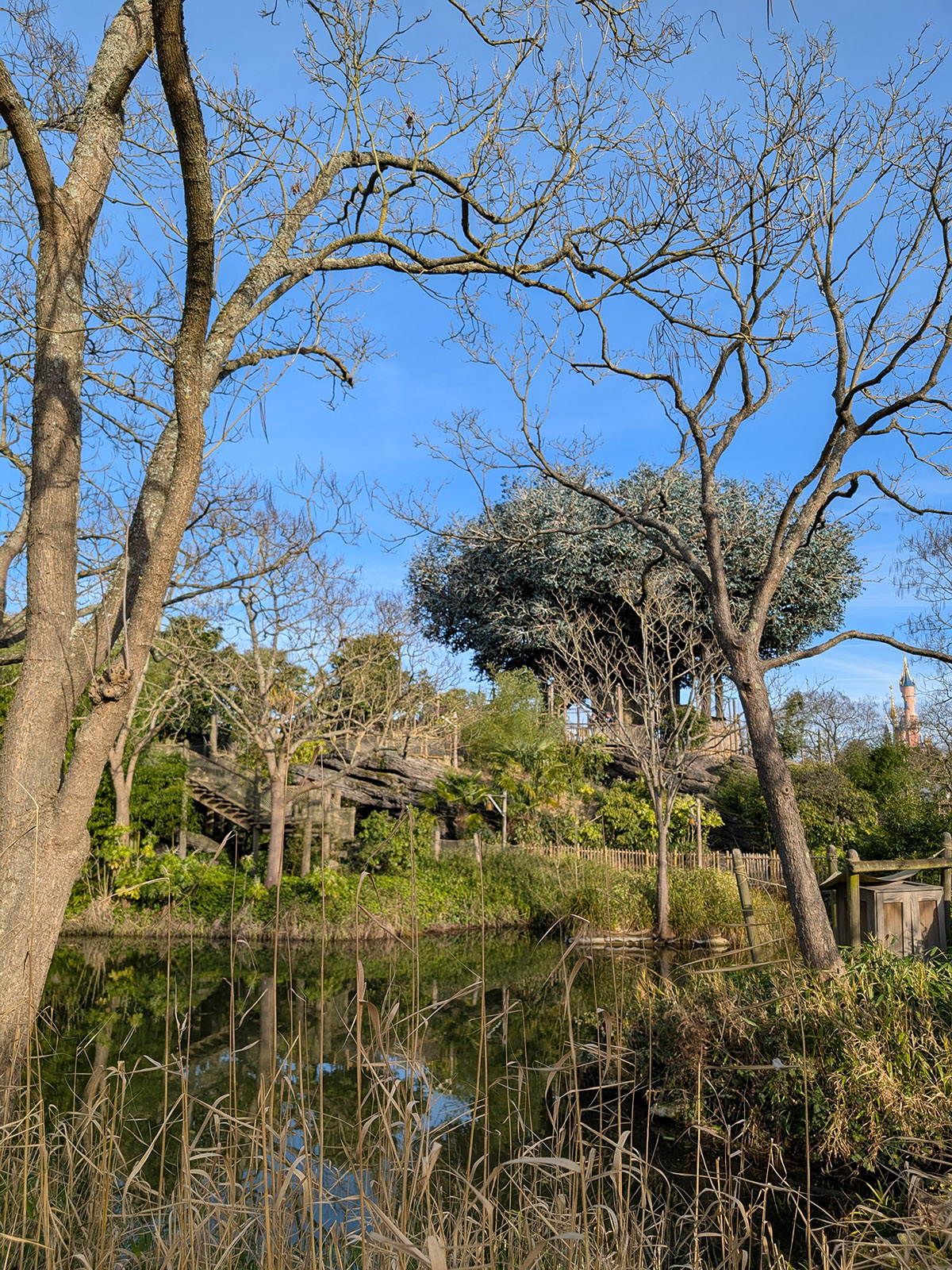 Wer genug vom "Frontierland" gesehen hat, gelangt über einen kleinen Weg direkt in das "Adventureland", wo Captain Jack Sparrow bei der aufwendig gestalteten Bootsfahrt "Pirates of the Caribbean" auf die Besucher wartet. Die rund zehnminütige Reise in die Welt der Seeräuber ist aber nicht die einzige Attraktion dieses Themenbereiches. Nur einen Steinwurf entfernt gilt es nämlich, mit Indiana Jones eine Tempelruine zu untersuchen oder das Baumhaus der Familie Robinson zu erklimmen, während unter der Erde versteckte Schätze in einem Höhlenlabyrinth entdeckt werden wollen. Leider funktionieren einige Effekte bei dem Baumhaus nicht mehr – hier wäre ein erweitertes Rehab dringend nötig.