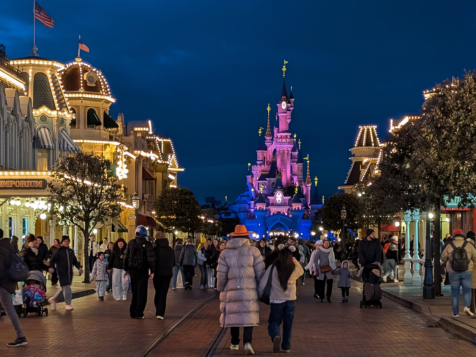 Disneyland Park ist nicht nur der besucherstärkste Freizeitpark Europas, sondern gleichermaßen auch das Fundament des gesamten Disneyland Resorts in Frankreich. Der 1992 eröffnete Park ist auch heute noch ein wahres Schmuckstück, auch wenn seit 20 Jahren kein wirklich neues Fahrgeschäft mehr gebaut wurde. So gab es dann auch für uns nur wenig Neues zu entdecken. Aber fangen wir von vorne an: Gleich hinter dem riesigen Eingangsbereich befindet sich mit "Main Street, U.S.A." Walt Disneys Vision einer breiten Einkaufsstraße des beginnenden 20. Jahrhunderts, die auf direktem Wege zu einem großen Platz vor dem bekannten Dornröschenschloss führt, welcher wiederum als Knotenpunkt für die restlichen vier Themenwelten des Parks dient.
