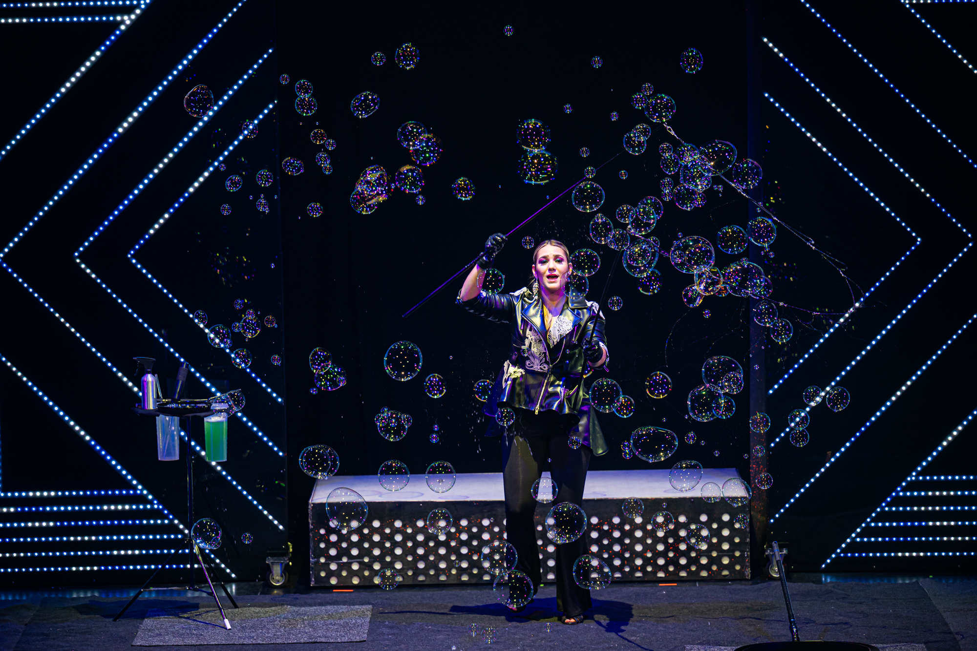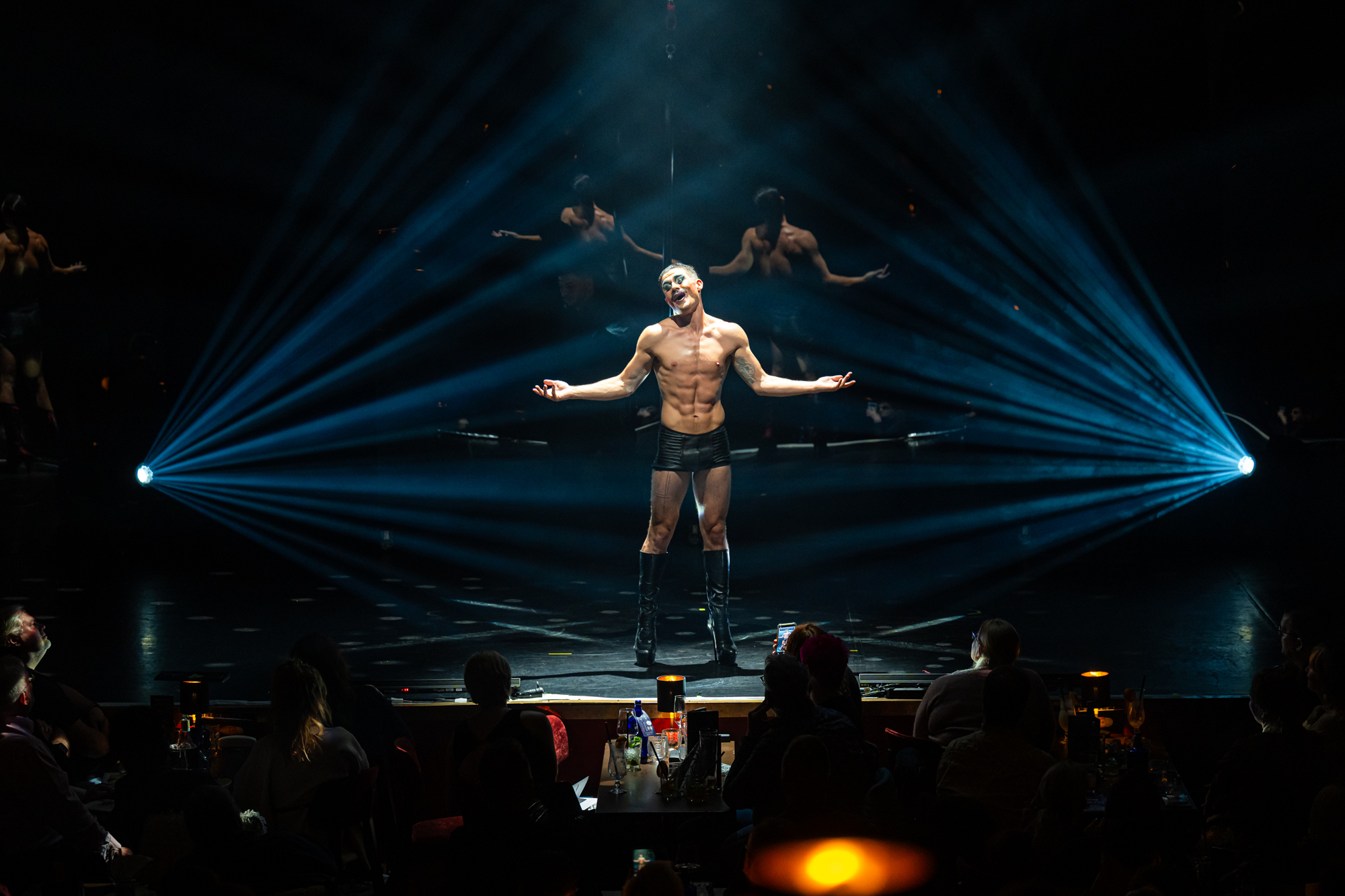Hatte die erste "Playback"-Show aus dem Jahre 2022 durchaus noch ein paar Längen und auch kleinere konzeptionelle Schwächen, zündet man nun unter der Regie von Simon-James Reynolds den Turbo. Dabei hat der Australier schon auf der Bühne selbst mehr als genug zu tun: Als exzentrischer Paradiesvogel stolziert er auf High Heels über die Bühne, wirbelt zusammen mit den beiden Tänzerinnen Vlada Dapper und Yulia Girda als Showgirl-Trio zu verschiedensten Pop-Hits und zeigt am Aerial Pole auch sein hohes artistisches Können. Und wenn er schließlich als Reinkarnation von Freddie Mercury mit Röckchen, Perücke und Staubsauger zu den Klängen von "I Want to Break Free" hinter dem Vorhang erscheint, merkt man, wieviel Spaß der Zeremonienmeister des gesungenen Wahnsinns auch selbst an "Playback" hat.