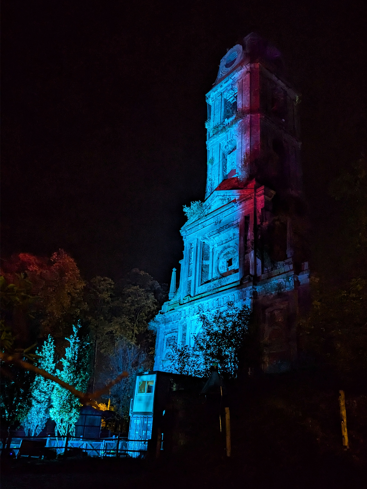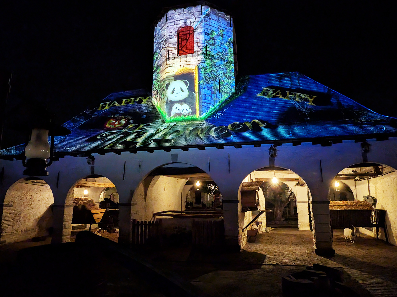Auch eine etwa zehnminütige Mapping-Show, bei der die Geschichte des Parks mit beeindruckenden Animationen präsentiert wird, kann auf ganzer Linie überzeugen. Als "Leinwand" dient hier übrigens die Ruine der historischen Cambron Abbey, in deren Krypta nach wie vor eine Freifluganlage für Fledermäuse integriert wurde, die gerade an den dunklen Halloween-Abenden auch eine Portion Gäsehaut bei den Besuchern erzeugen dürfte. Nicht minder beeindruckend sind die unzähligen Teelichter, die auf den einzelnen Höhenstufen der balinesischen Tempelanlage platziert werden und die gesamte Kulisse in der Dunkelheit in ein fast schon magisches Licht eintauchen lassen.