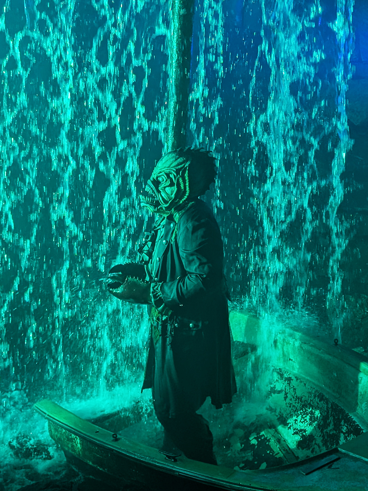 Natürlich spielt der allgemeine Aufbau des Parks mit oftmals relativ engen Wegebereichen der Bespielung in die Karten, und scheinbar sind die dortigen Mitarbeiter einfach hervorragend trainiert oder motiviert. Für den Besucher zählt jedenfalls das Endergebnis – und das kann sich wahrlich sehen lassen. Eingeläutet wird Halloween am Abend mit einer großen Parade aller Charaktere samt Paradenwagen durch den Themenbereich Port Laguna, und gerade bei erst einsetzender Dunkelheit fällt das extrem gute Visualizing der Monster sofort ins Auge.