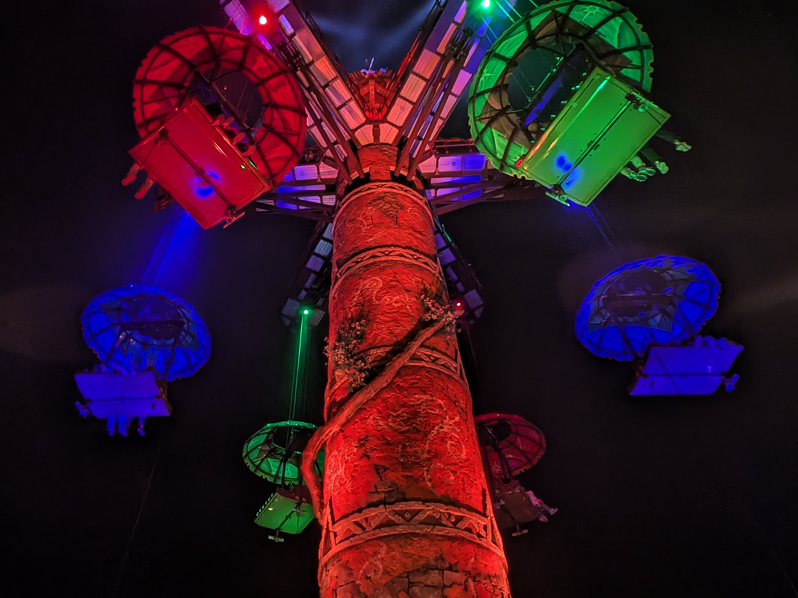 Und obwohl beide Mazes wirklich aufwändig gestaltet wurden mit viel Liebe zum Detail, hatte uns trotzdem "The Witches Forest" am besten gefallen. Hier geht es durch einen nebeldurchfluteten Wald, in dem böse Hexen ihr Unwesen treiben. Durch eine akzentuierte Beleuchtung, ein paar überraschende Effekte, eine tolle Soundkulisse und eine durchweg hervorragende Besetzung hat es uns atmosphärisch sofort gepackt - es gibt halt nichts Gruseligeres als ein nächtlicher Spaziergang durch einen finsteren Wald. Drei weitere Mazes komplettieren das Angebot: ein Puppenhaus, ein von Ratten bewohntes Labyrinth und das ebenfalls neue Vampir-Maze "Unmasked: Waltzthrough", das wir leider nicht geschafft haben.