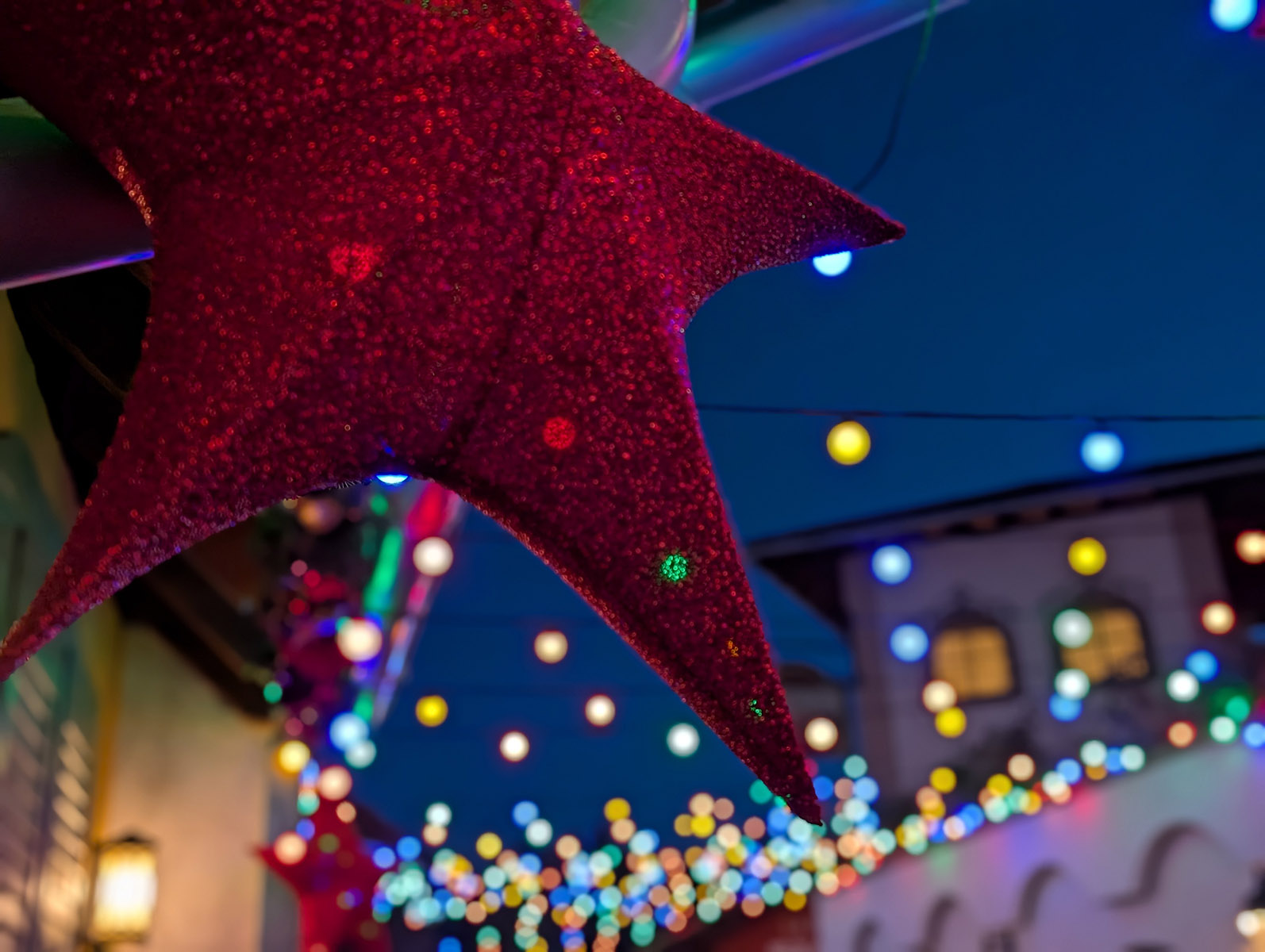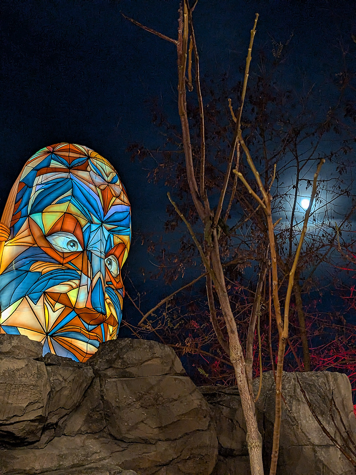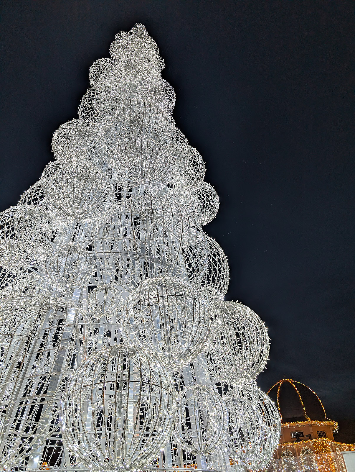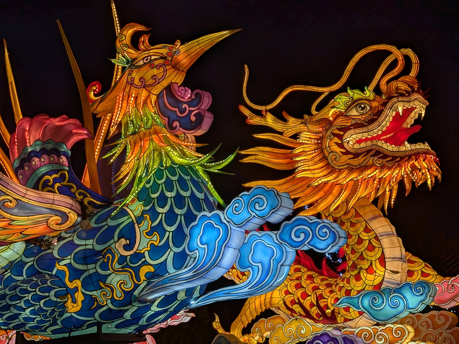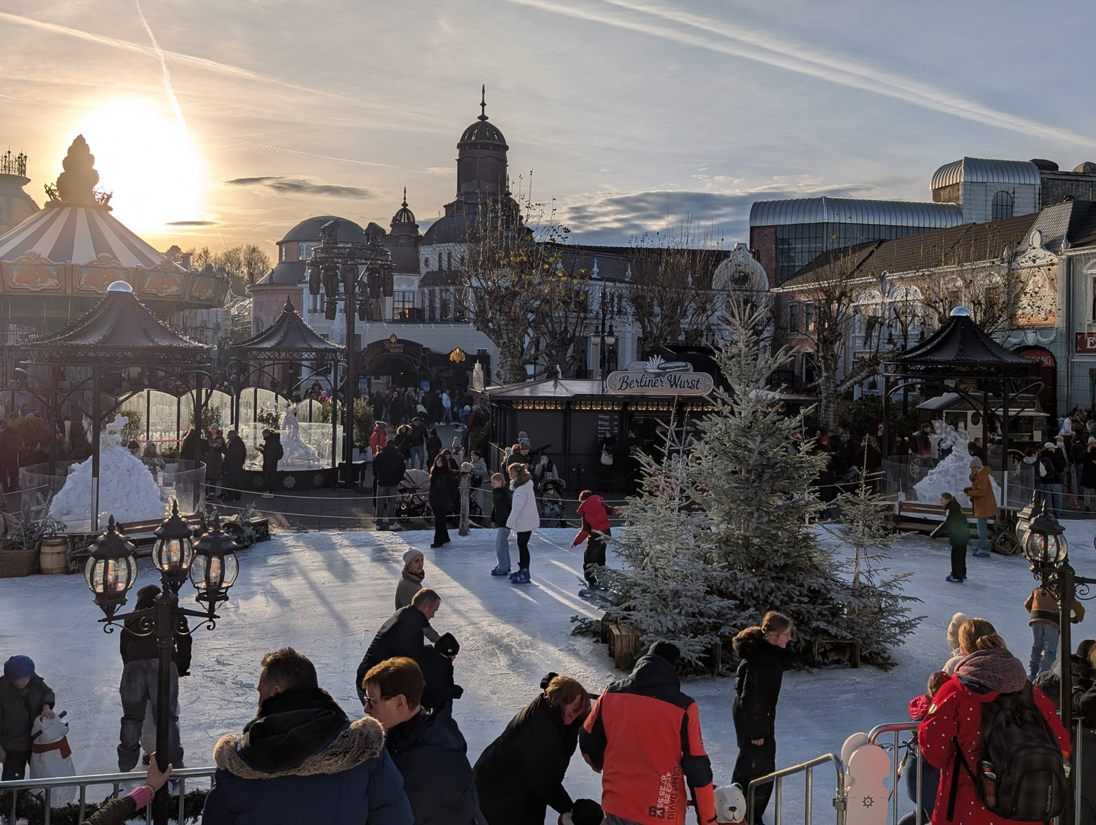 Und dieses Konzept zieht sich durch den gesamten Park – jede einzelne Themenwelt setzt auf eine eigene winterliche Erfahrung, die der Gast machen kann: In Berlin dominiert zum Beispiel das Klassische, Elegante und gleichzeitig auch Opulente, während in Rookburgh die Kälte und auch die Geschwindigkeit der Industrialisierung mit Laser-Shows dargestellt wird. Heimelig und gemütlich wirkt es hingegen auf dem Dorfplatz in Klugheim, während die tiefen Schluchten der benachbarten Achterbahn Taron in ein tiefrotes, wie Lava glühendes Licht getaucht werden. Und ganz besonders gelungen ist in diesem Jahr die chinesische Themenwelt, in der sich zu den bereits bekannten riesigen Lichterfiguren von Drachen nun auch noch weitere Ensembles aus Fischen und Pflanzen dazugesellt haben, die einen wundervollen Kontrast zu den ansonsten kaltweißen Illuminationselementen bilden.